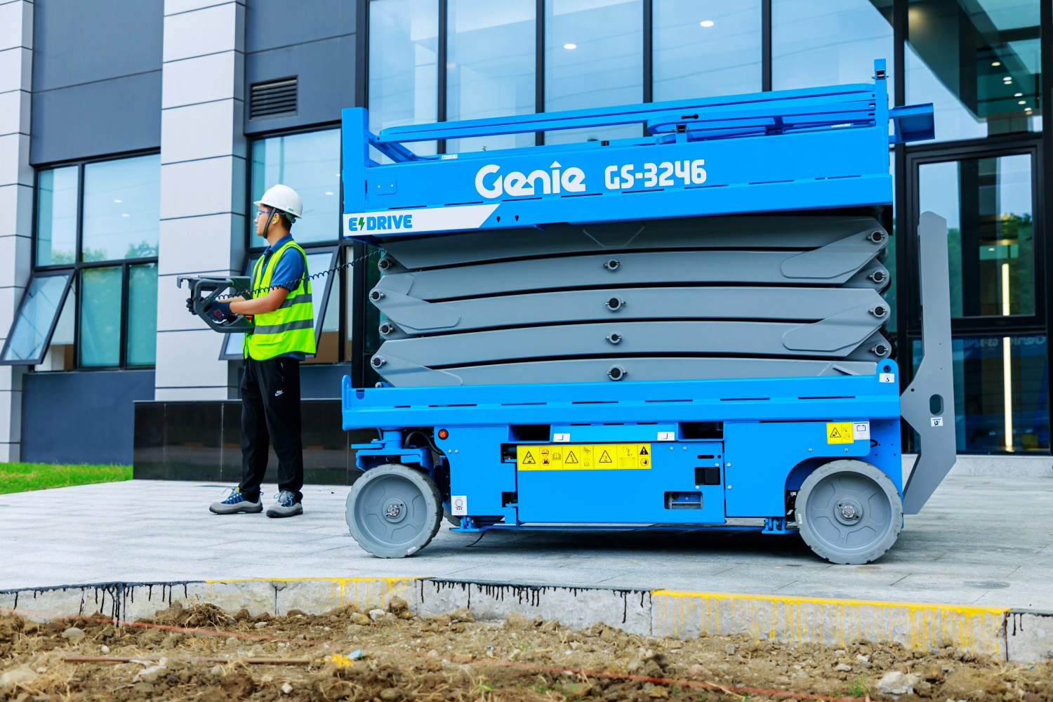 Die kompakte Genie® GS™-3246 E-Drive Scherenarbeitsbühne mit innerem Wenderadius null ist ideal für Baustellen-, Wartungs- und Installationsarbeiten auf festem, ebenem Untergrund bei wenig Platz – innen wie aussen. Ihr hochmodernes Genie E-Drive AC-Fahrantriebssystem bietet höchste Effizienz und Einsatzdauer, besonders bei häufigem Verfahren.